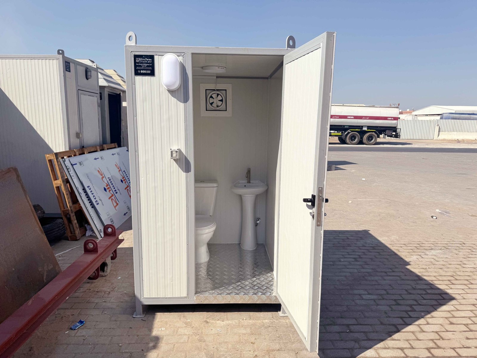 EcoPlanet offers a Portable Toilet Rental solution specifically designed for temporary setups in various event venues, construction sites, and remote work locations. This prefabricated portable toilet unit is crafted to provide maximum comfort and hygiene, while being easy to connect to existing sewer systems. Ideal for short-term use, this portable toilet unit is available for 30-day rental periods and is perfect for use in locations across Dubai, Abu Dhabi, and UAE.