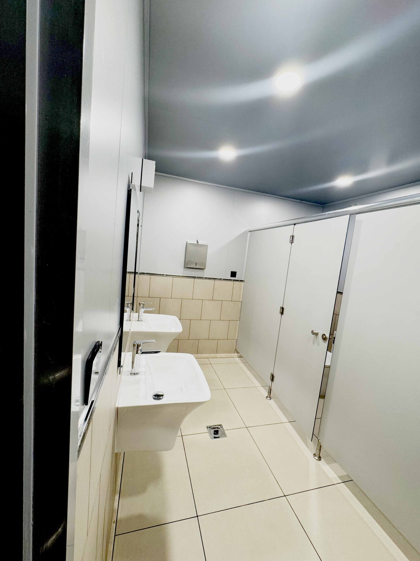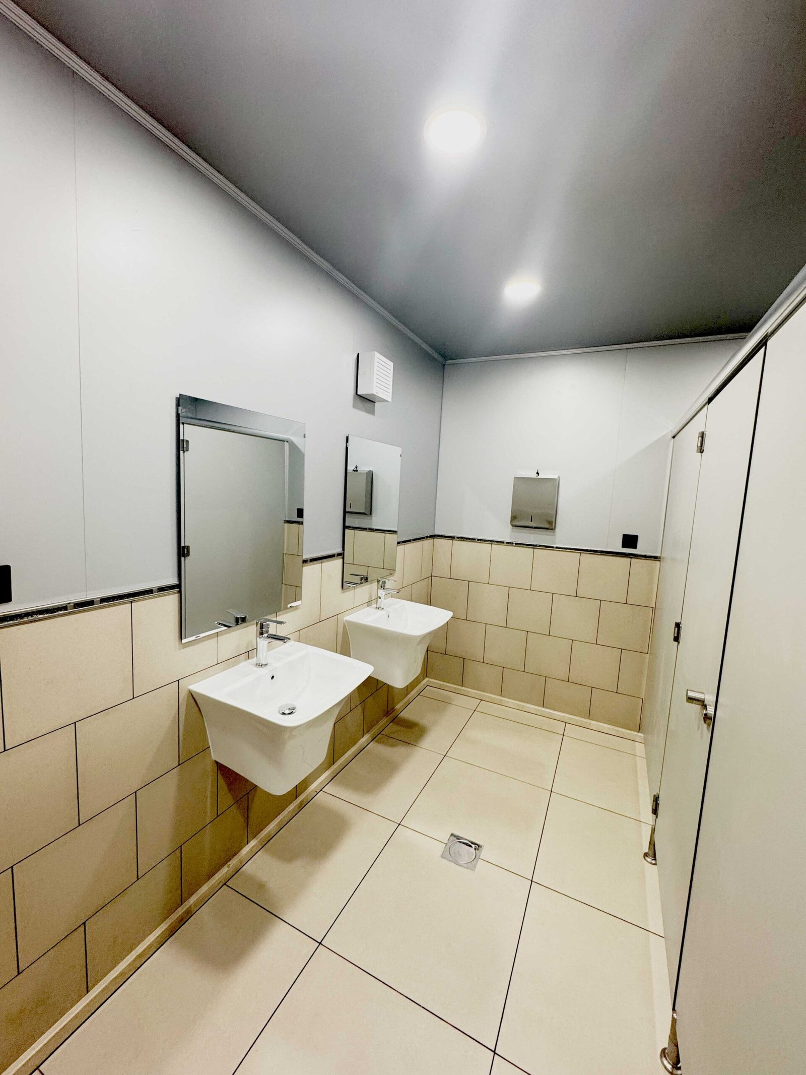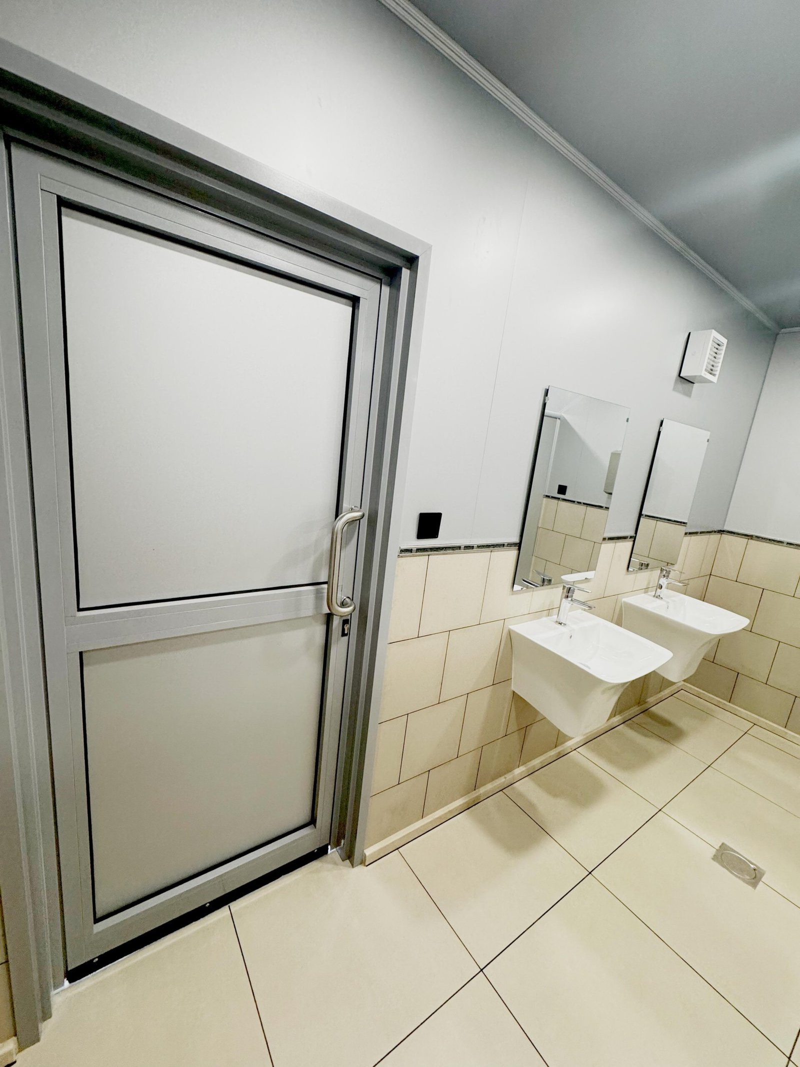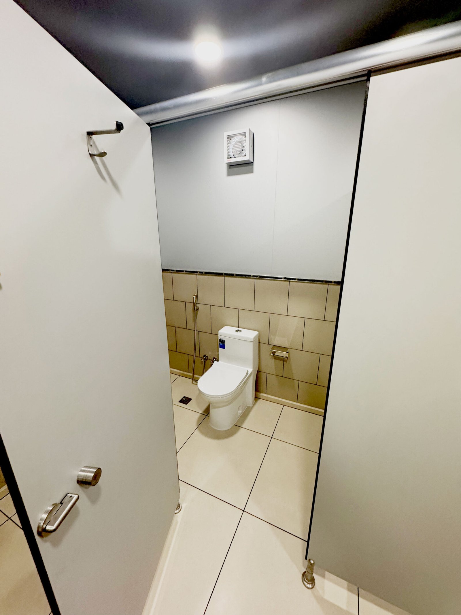 • Exhaust Fans: Each toilet cabin is equipped with an exhaust fan with a powder-coated aluminium frame for enhanced air circulation and odor control.