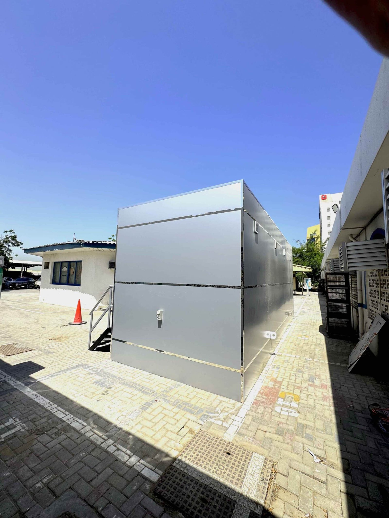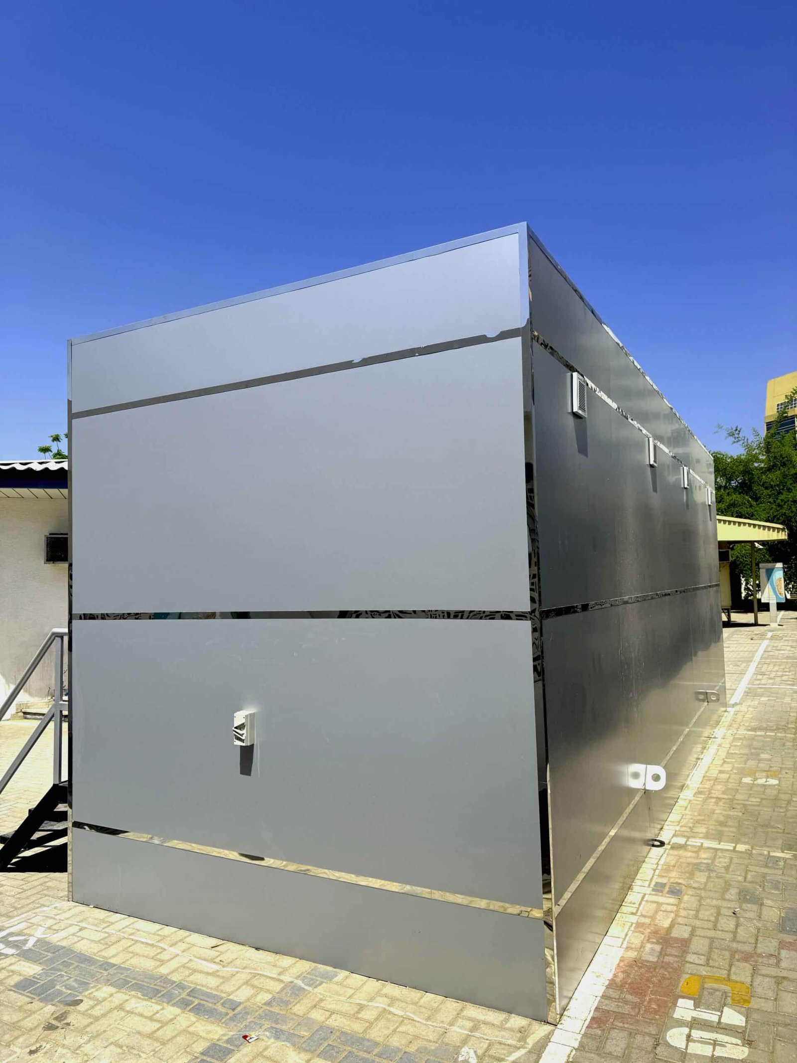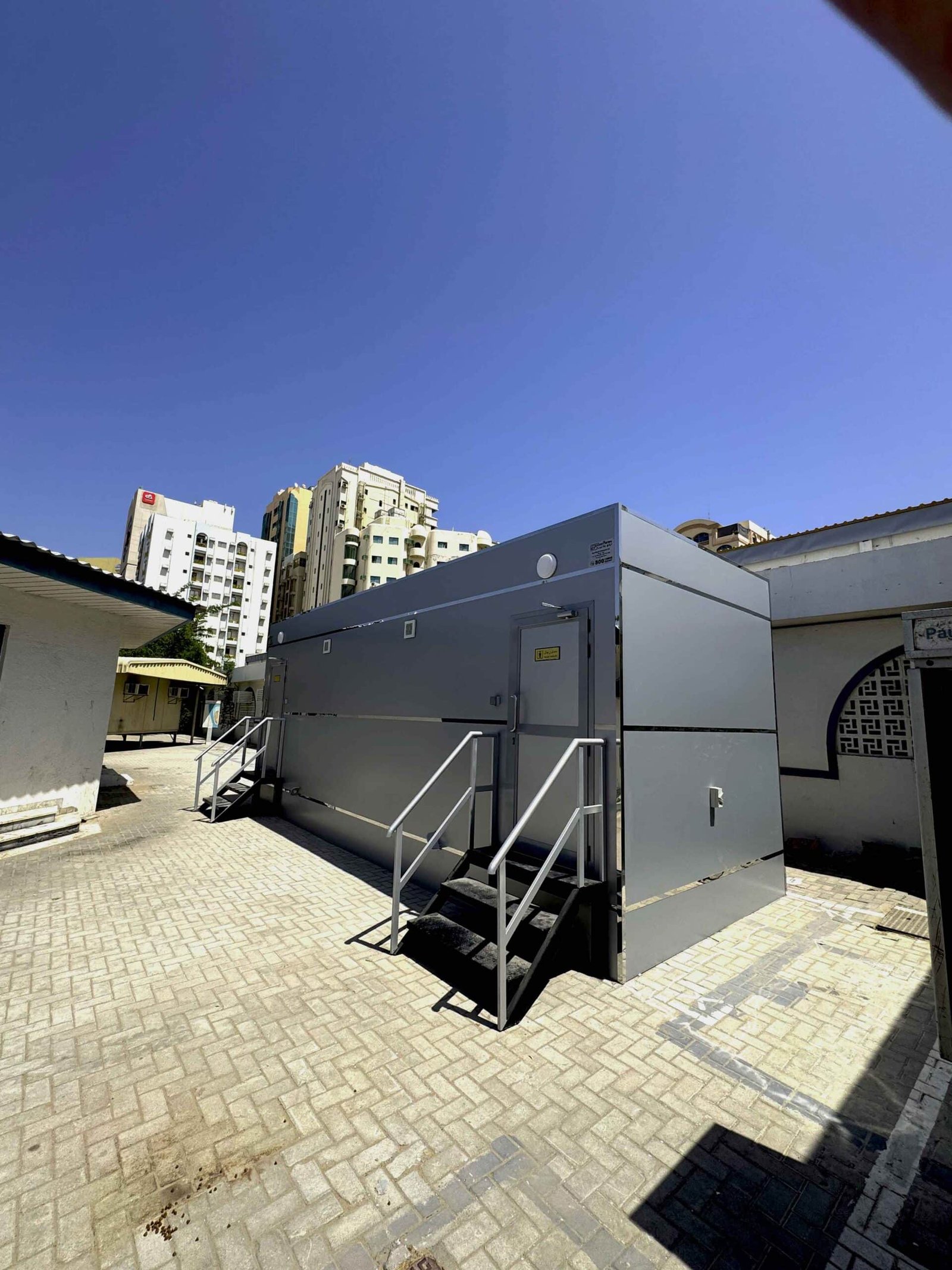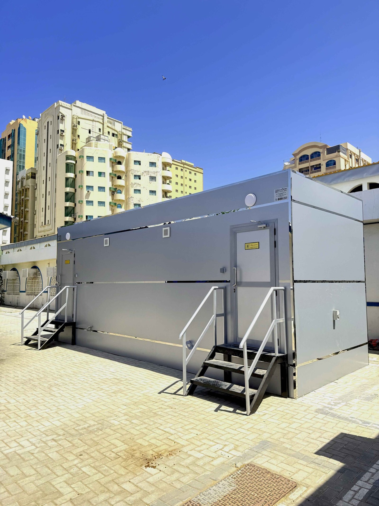 This Portable Washroom Cabin has been specifically designed and installed for Sharjah Asset Management, providing a premium restroom solution for visitors and staff at the Birds Market in Sharjah.